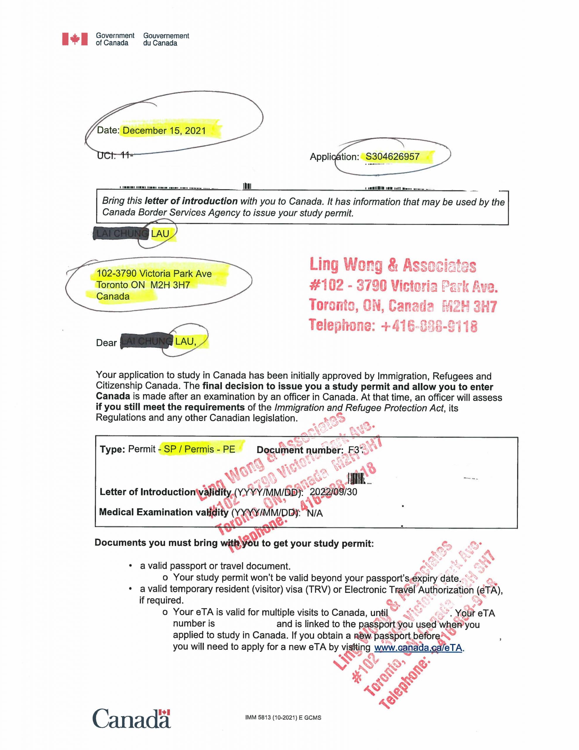 好消息頻傳,學簽前後9天獲批經典學簽成功案例, 香港人相關通識題材總匯 (持續更新) @前言/背景 請先閱讀「號外: 香港人申請學簽前後三天獲批」愈戰愈勇: 香港家庭申請學簽,前後 6 天獲批@捷報 申請人暫住 UK,我們網上遞交他的學生簽證,2021.12.06 移民部開檔案,2021.12.15 獲批,趕及 2022.01 在加拿大開學。這位姓 LAU 的香港朋友也慶幸可以及時離開 UK,避開Omicron 在當地肆虐。