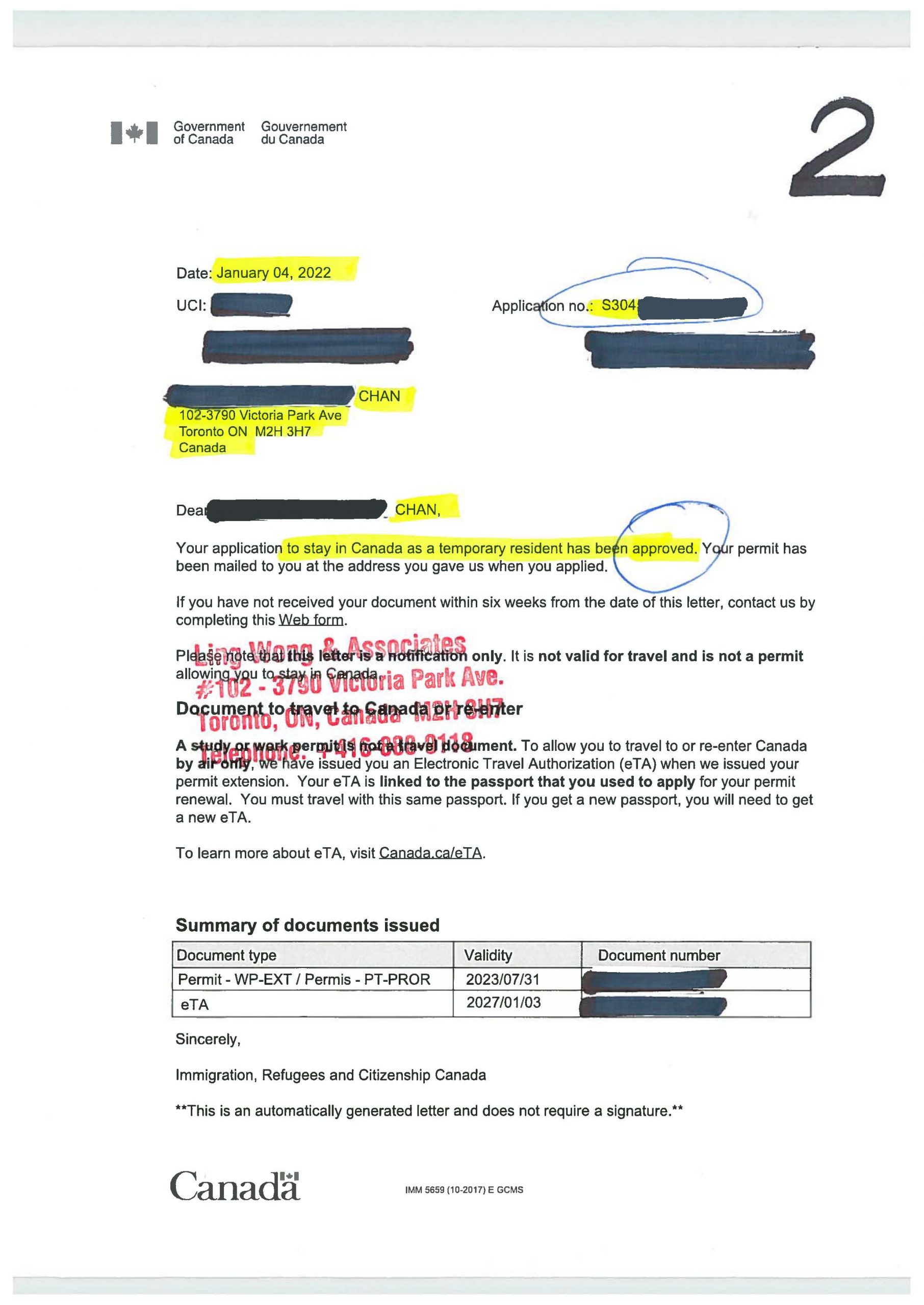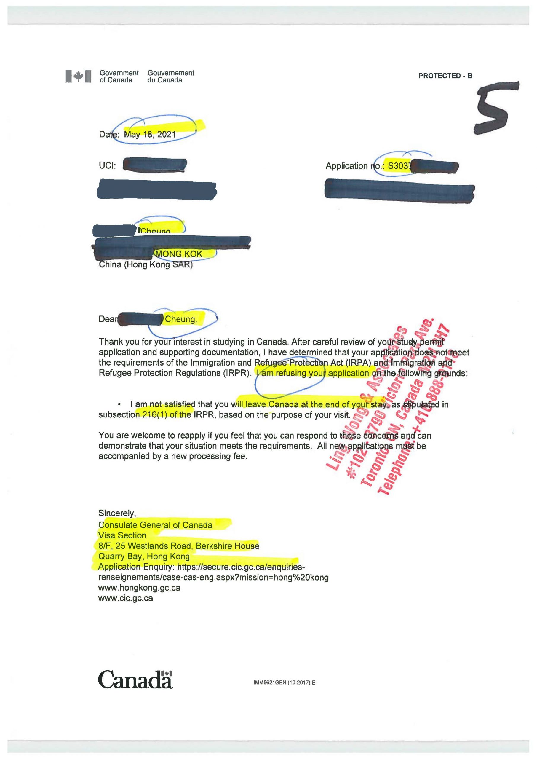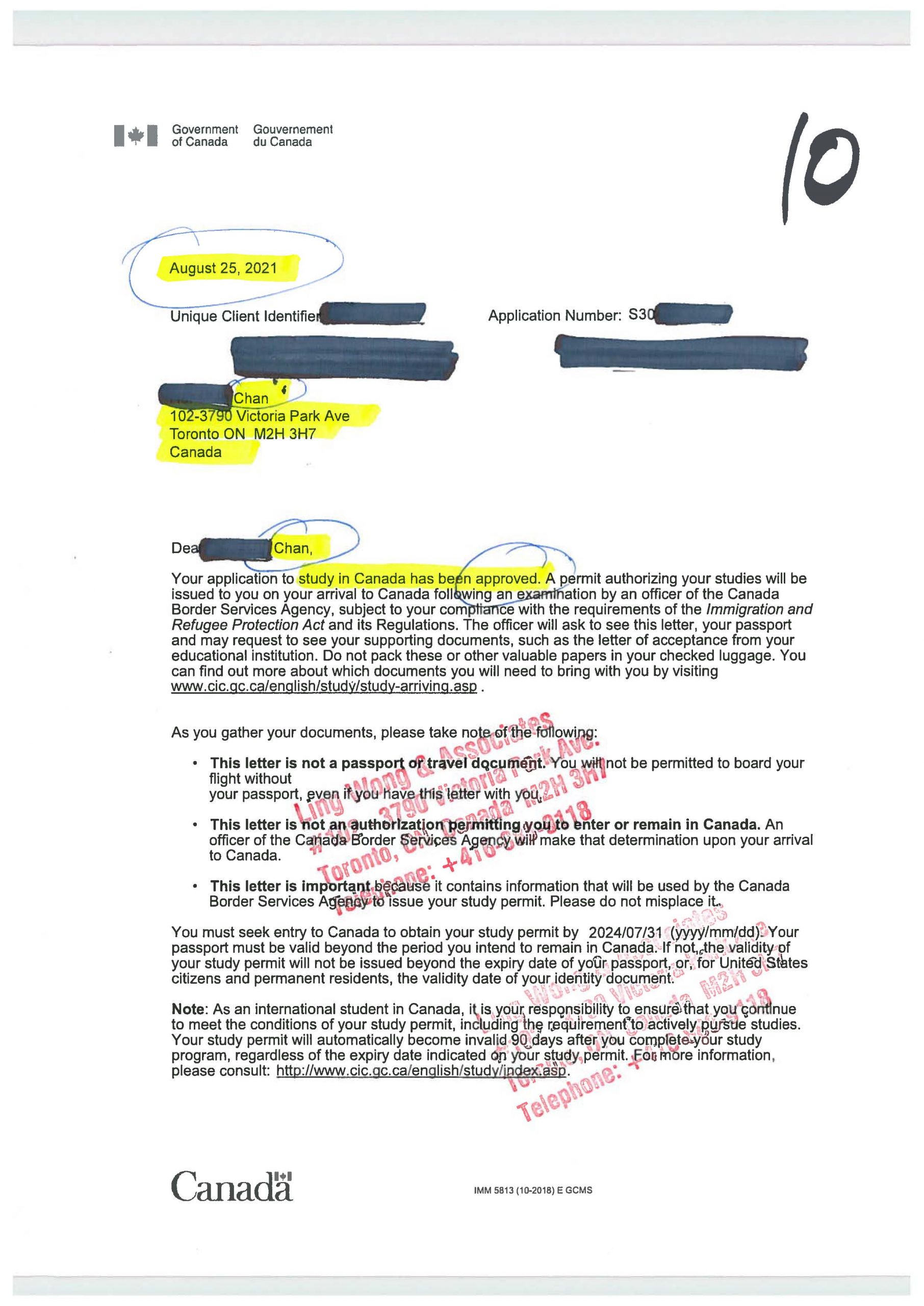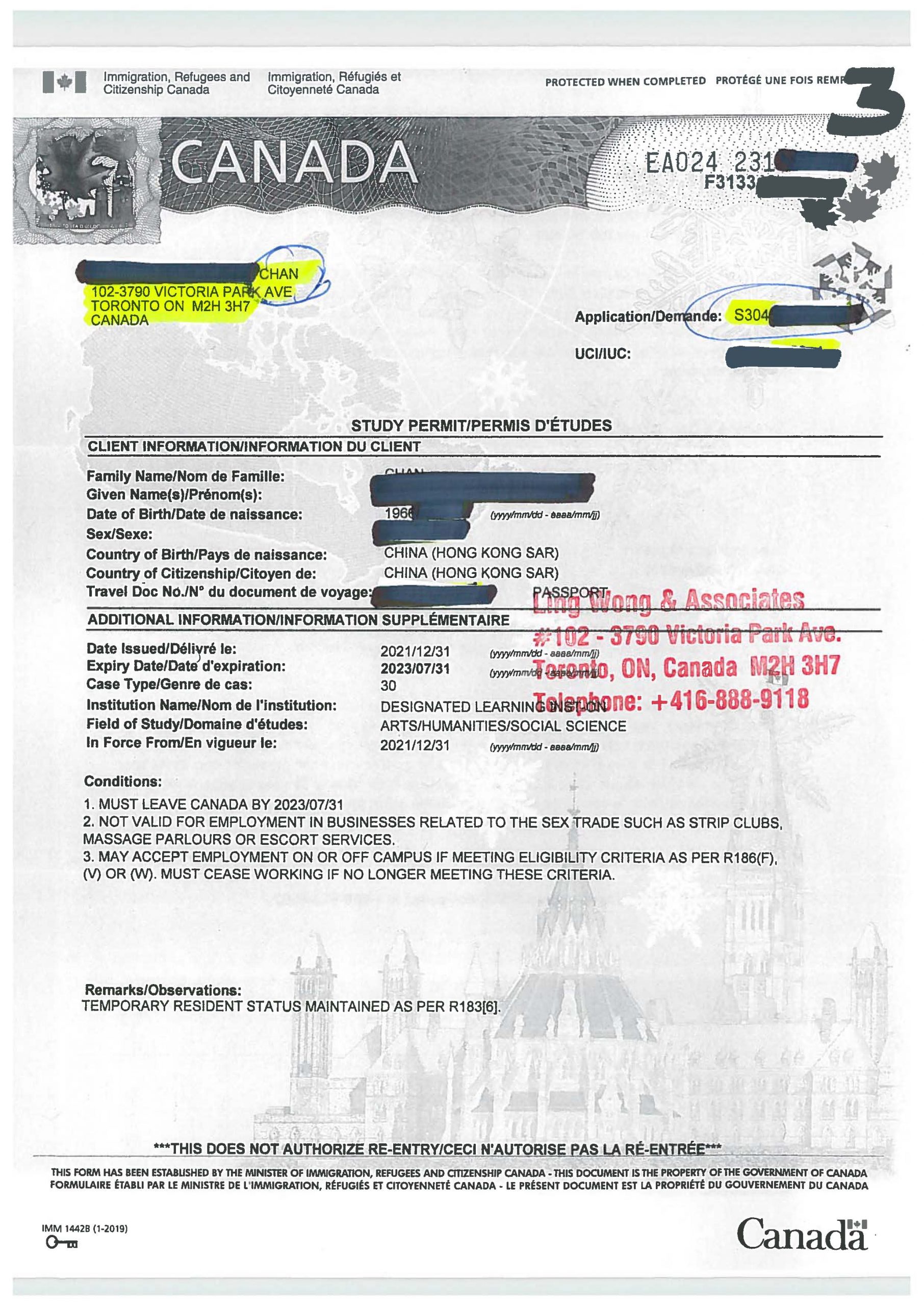 陳姓香港朋友DIY學簽於2021.03.23失敗,經我們處理,於2022.01.04境內申請成功,拿到學簽,剛好趕及2022.01.07開學。