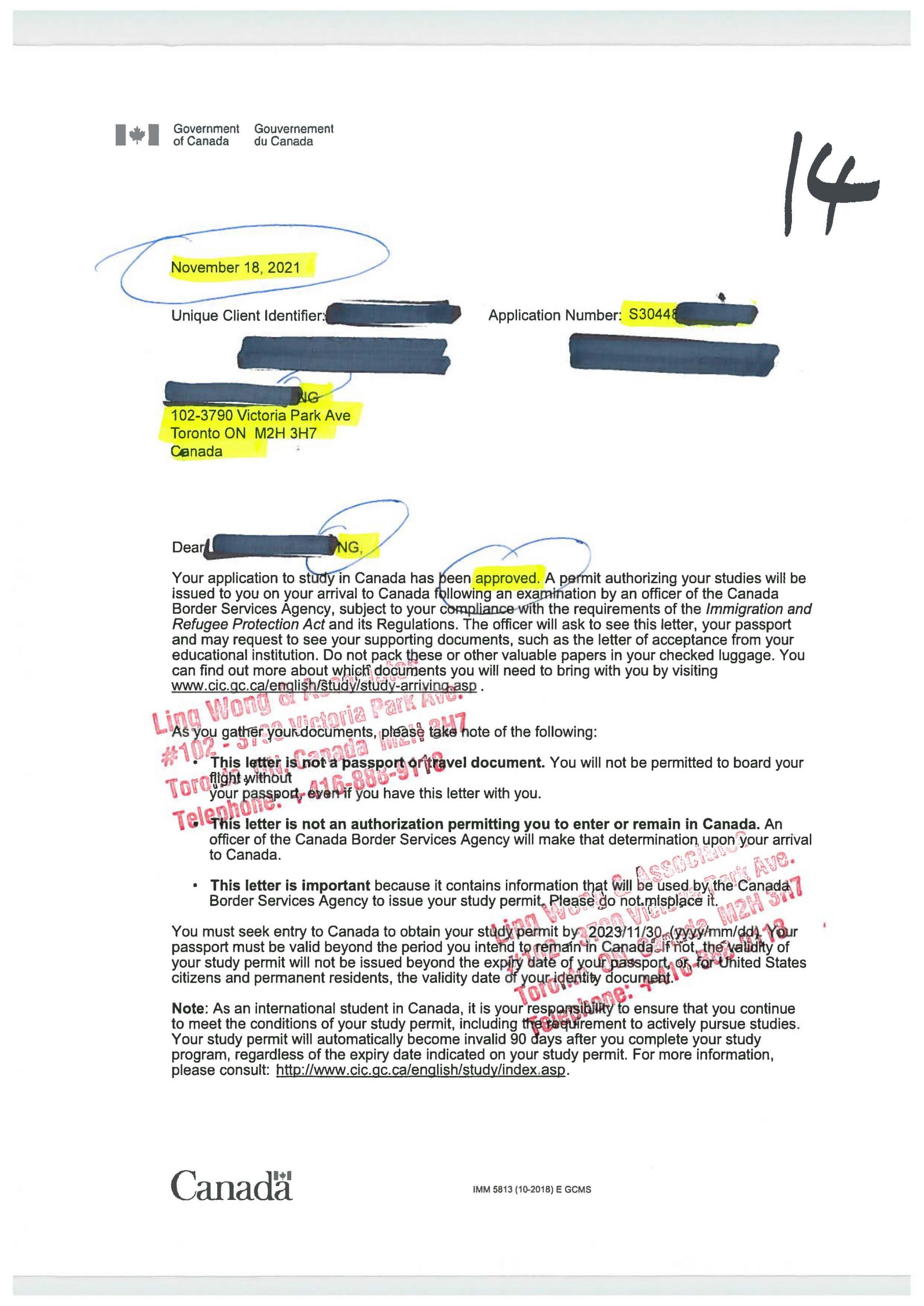 吳姓朋友於2021.09.20 DIY失敗,趁加拿大2021.09.07放寬旅遊限制,以旅客身份入境加拿大,我們接手,於2021.11.18贏回來,趕得及2022.01開學,可喜可賀。