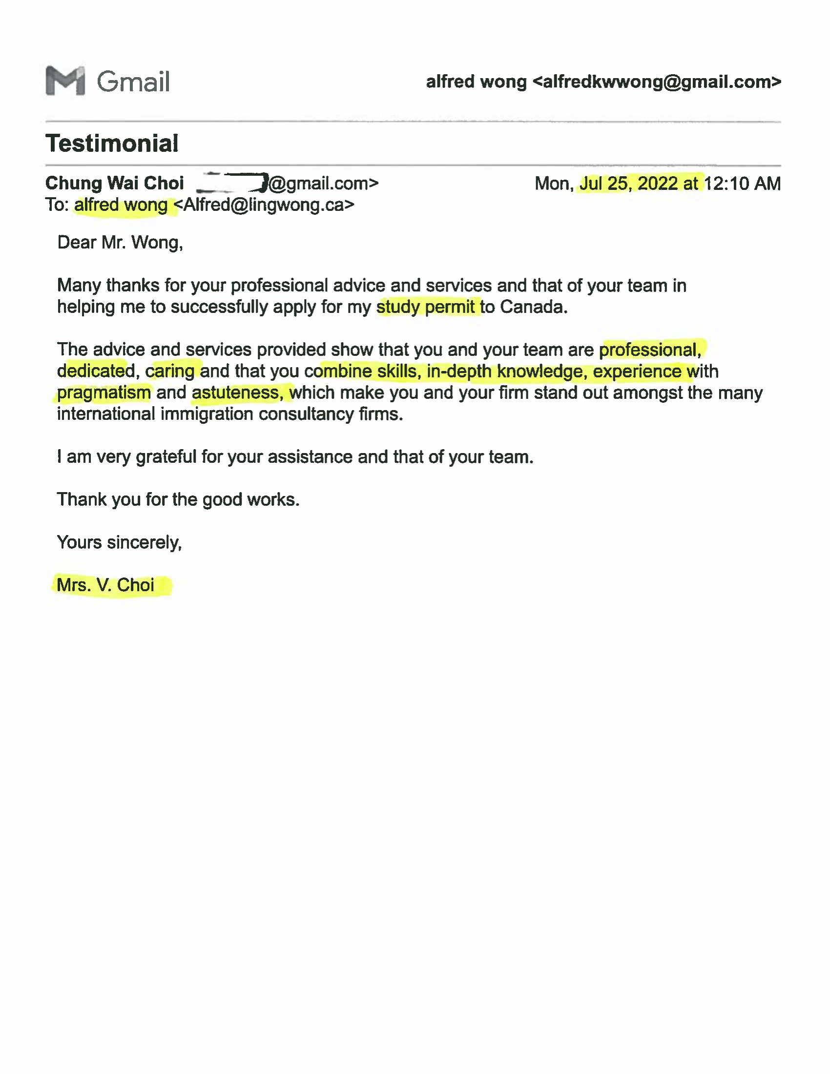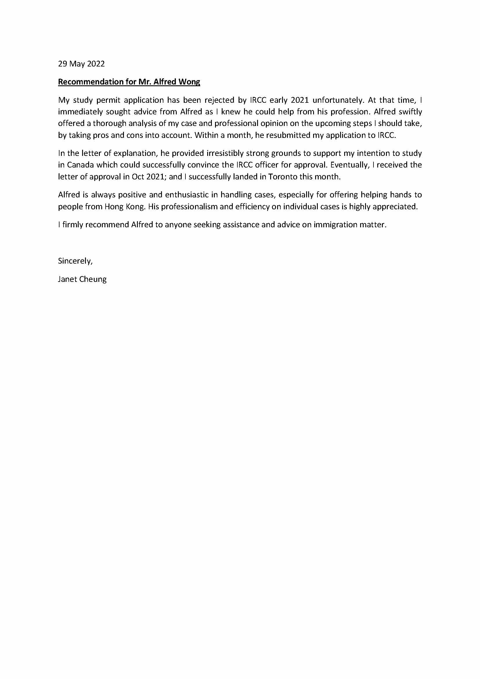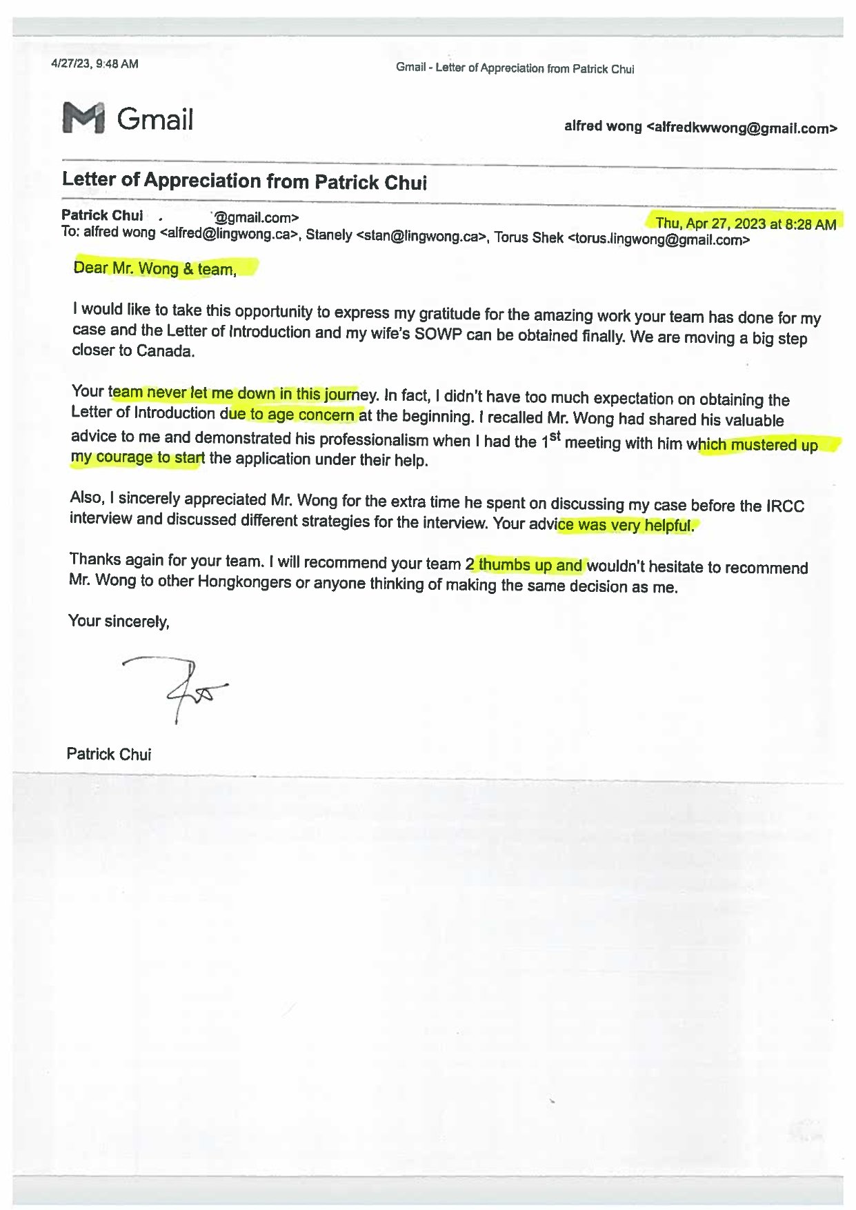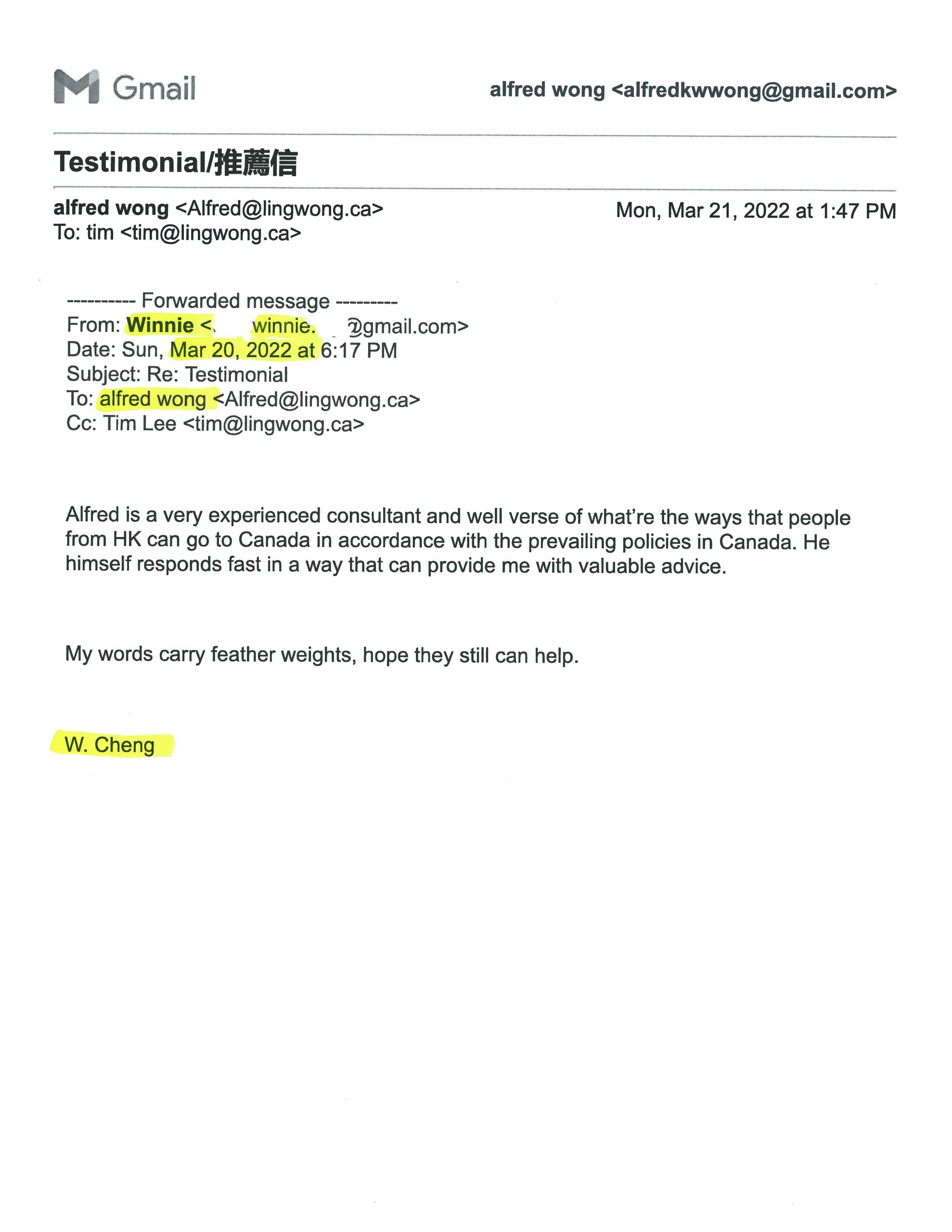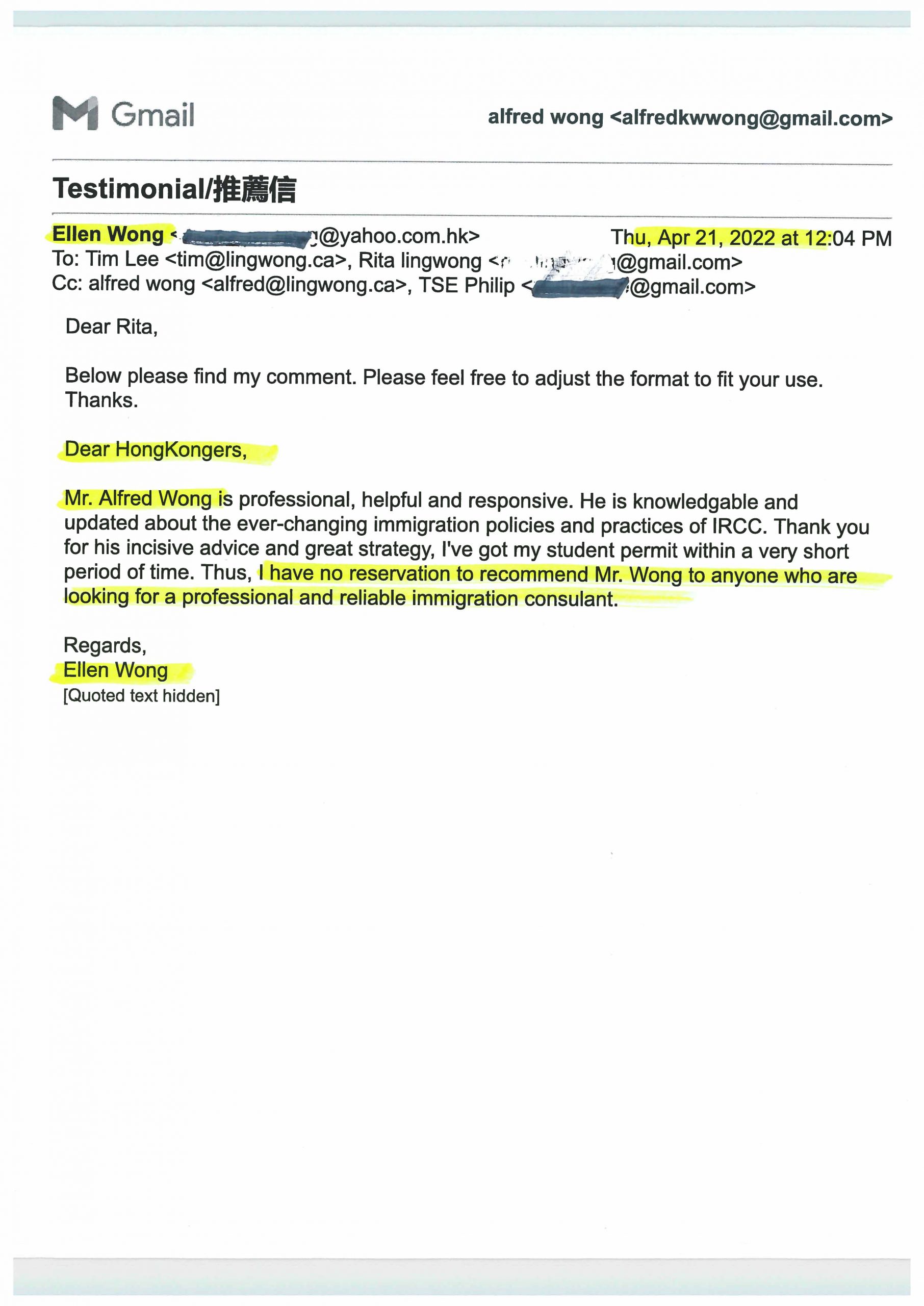 我們增設這欄目,與大家分享香港客戶給我們的推薦信,希望讓更多香港家庭得到我們團隊的幫助,成功移民加拿大。