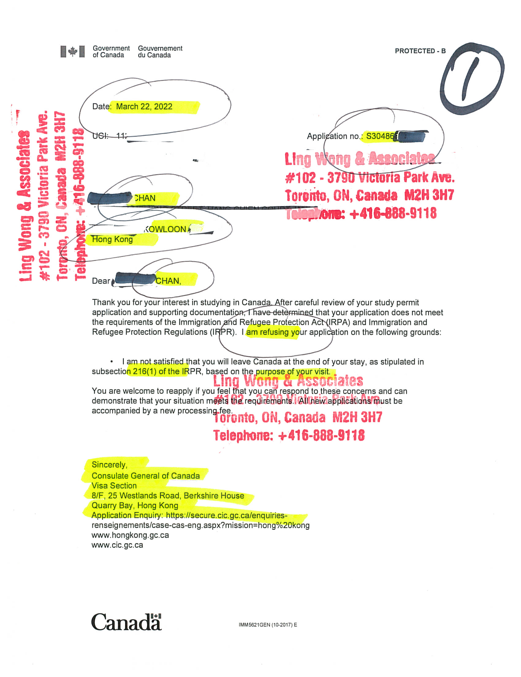 DIY失敗,我們贏回來經典學簽成功案例 @前言 首先請點擊這裡,參看經典案例,我們始終認為不穩定性在於香港而不是我們。 @CHAN同學 Page 1: DIY於2022.03.22失敗,原因是 “purpose of visit”。 Page 2: 我們於2022.05.25重新遞交,仍然由香港處理。 Page 3-4: 2022.07.04獲批,前後需時一個月左右。 這仍是我們一如以往的做法,不會撒謊說CHAN同學學成後會回香港大展鴻圖,與香港的officer拗手瓜,就是衝着Stream A而來,在法律和IRCC政策方面據理力爭成功。 起來,不願做奴隸的人們!