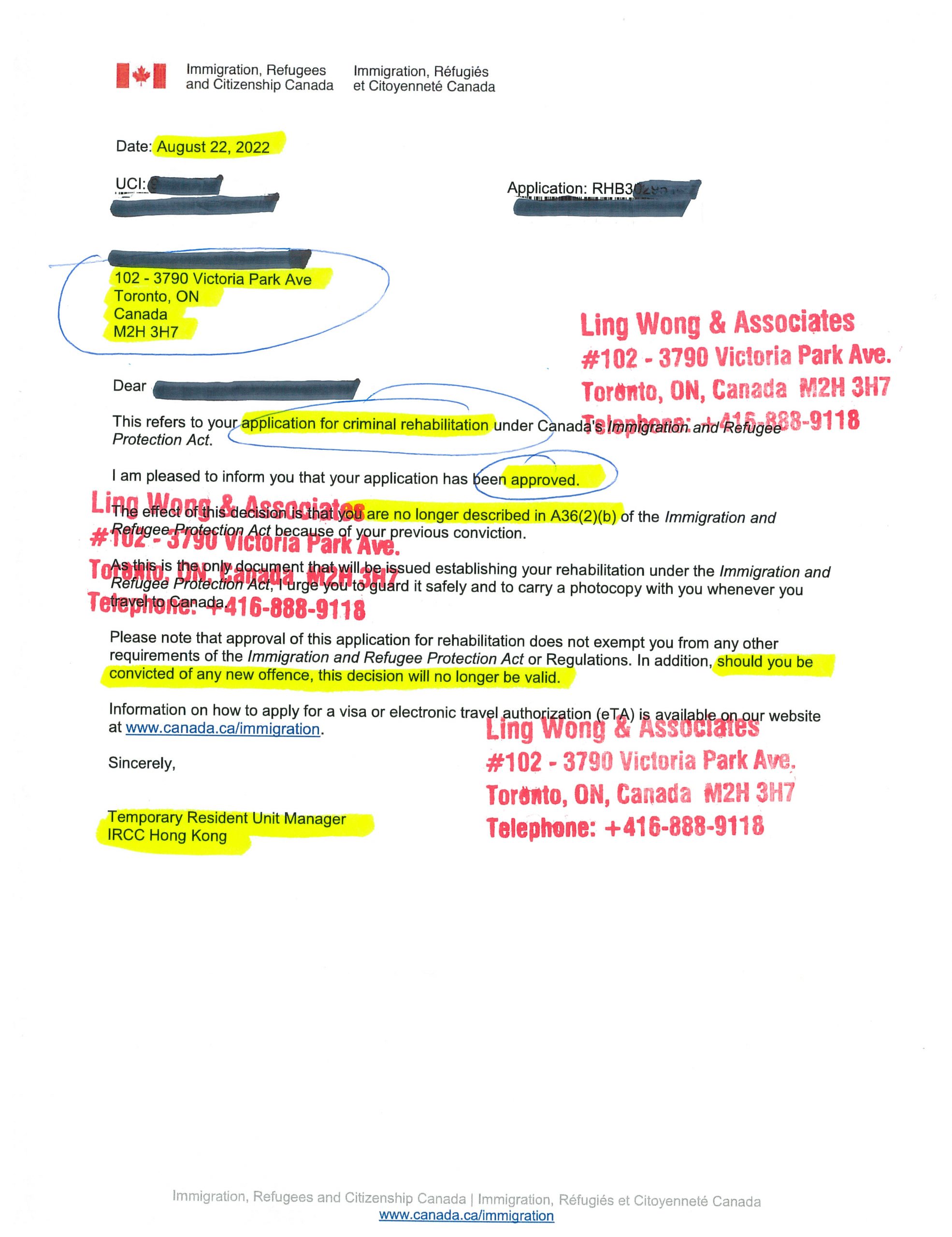 有圖有真相 – 傳說中的刑事洗底批文,大家見過未?有被捕或遠久犯罪紀錄的香港人留意 2022.08.22收到好消息,香港這位朋友成功刑事洗底,隨時可以旅遊到加拿大,有興趣甚至可以走Stream A移民,導讀如下: 請點擊這裡,了解移民法例第36條 (2)(b) 內容。 如果申請人將來重新犯事,今次的批文將會作廢。 IRCC建議申請人將來旅遊到加拿大時隨身帶備這批文,方便關員檢閱。 起來,不願做奴隸的人們!